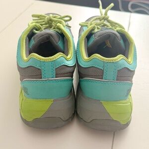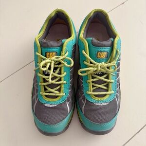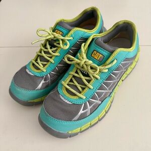 Who says safety can’t be stylish? These Caterpillar (CAT) Streamline work shoes offer the perfect blend of athletic comfort and rugged protection. Featuring a vibrant Teal and Lime Green colorway, these shoes add a whimsical touch to a traditional industrial silhouette. Whether you are a "spiritual entrepreneur" on the move or a fashion reseller navigating busy warehouses, these shoes fit seamlessly into a lagenlook or eclectic utilitarian outfit. Features: Safety: Non-metallic Composite Toe (lighter than steel but just as tough). Protection: ASTM F2413-11 rated for impact and compression; Electrical Hazard (EH) resistant. Comfort: Low-profile, athletic design with ERGO technology for all-day support. Aesthetic: A bold, colorful take on quiet luxury workwear that stands out in a sea of brown boots. Worn 3 times indoors. Retails: $139 FEB/26 #CAT #caterpillar #industrial #warehouse #steeltoe