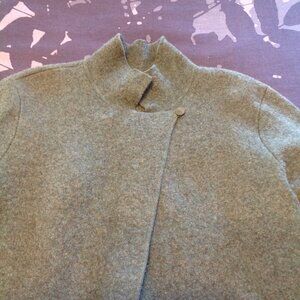 Eileen Fisher Boiled Wool Hi Neck Asymmetrical Cropped Blazer Jacket M