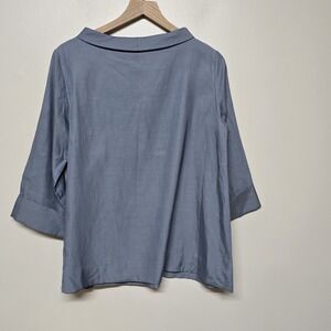 COS Blouse Womens 10 Blue 3/4 Sleeve Funnel Neck Minimalist Modern Lagenlook NWT
