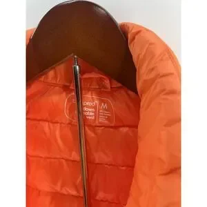 Stay warm and visible with this vibrant orange puffer vest in a men's size medium. This sleeveless jacket features a classic quilted design that provides excellent insulation for cooler weather. The full-zip front allows for easy layering over hoodies, flannels, or long-sleeve shirts, making it a versatile addition to any outdoor wardrobe. Crafted for durability and comfort, this vest is ideal for hiking, camping, or everyday casual wear. The lightweight yet puffed construction offers significant warmth without the bulk of a full jacket, allowing for a full range of motion during physical activities. It includes functional pockets to keep your hands warm or to store small essentials securely while you are on the move. This pre-owned item has been well-maintained and is ready for continued use. The bold orange color ensures high visibility during outdoor excursions or hunting season. Whether you are working in the yard or hitting the trails, this quilted vest provides the thermal protection needed for crisp autumn days and chilly winter mornings.