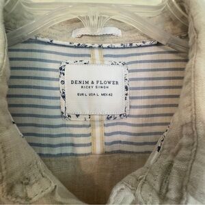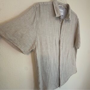 Denim & Flower Ricky Singh Shirt Men L Beige Short Sleeve Button Up Linen Resort
