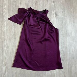 Rich Purple Textured Top Asymmetrical Neckline Statement Bow Old Money
