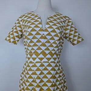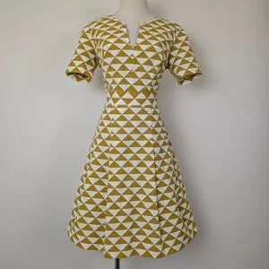 Geometric Mini Dress Circle Skirt Short Sleeve Fit Flare