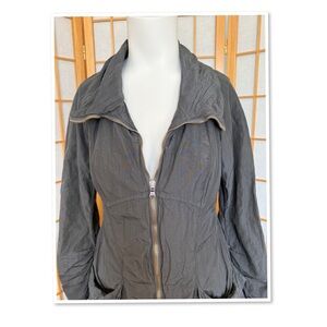 Dark gray, front-zip, balloon hem utility jacket