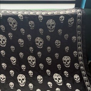 Iconic Alexander McQueen silk skull scarf. Very good condition showing only light wear—some pulls here and there but nothing major.