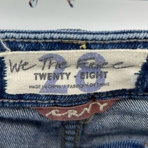 Free People We the Free Medium Wash CRVY High Rise Frayed Hem Button Fly Cropped Wide Leg Jeans