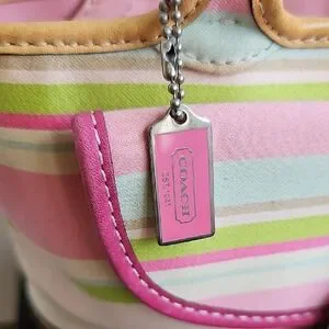 Vintage Coach Hampton Pastel Stripes Small Tote Bag #1888 Pink GUC