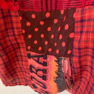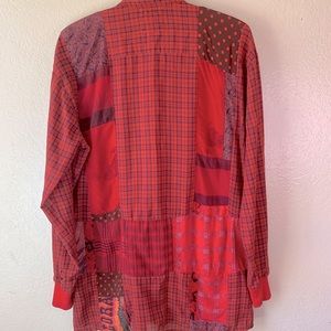Staley/Gretszinger Vintage Red Mixed Media Patchwork Long Sleeve Shirt