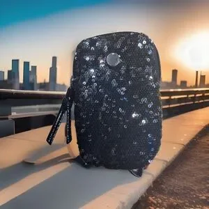 Add some sparkle to your outfit with this beautiful black sequin Bongo wristlet. Perfect for a night out or special occasion, this wristlet features just the right amount of sequins to make a statement without being too overwhelming. The wristlet is brand new and has never been used, so you can be sure you're getting a quality product. This wristlet is designed specifically for women and comes in a classic black color that will match any outfit. It's the perfect size for carrying your essentials, such as your phone, keys, and money, without being too bulky. The wristlet is also versatile and can be paired with a variety of different styles.