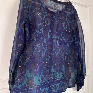 Ecote Urban Outfitters Blue Purple Paisley L/S Top Sheer, Size M