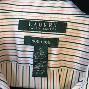 Stylish Ralph Lauren shirt with crisp pink and black stripes. Ideal for both formal and casual settings. Comfortable and elegant design.