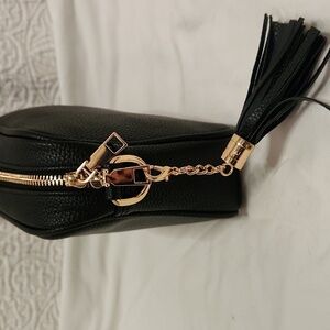 New! Vegan leather black purse with 2 shoulder straps crossbody handbag gold