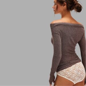 super lightweight ribbed fabric is draped to perfection with this form-fitting, off-the-shoulder long sleeve from Intimately.