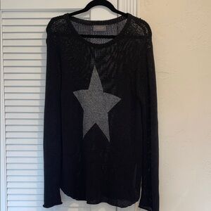 Chic black knit top with a striking gray star. Ideal for casual wear. Size is M/L
