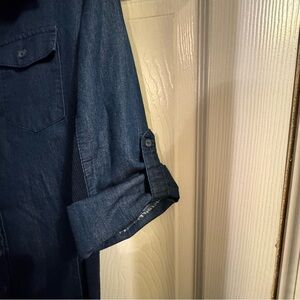 Cavalini Women’s Medium Dark Wash Denim Button Up Roll Tab Shirt