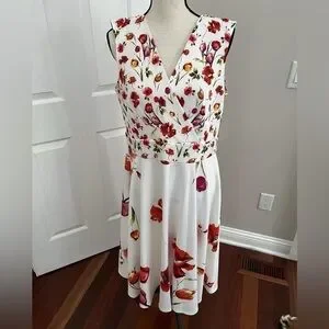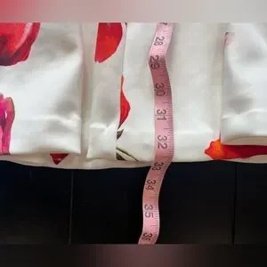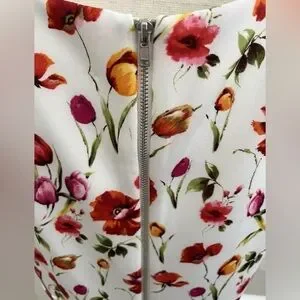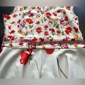 A-Line and Beautiful. Gently used condition. Beautiful creamy white background with colorful flowers in red, pink, orange and yellow.