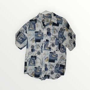 Casual button-down with nautical designs. Perfect for relaxed outings. Stylish and comfortable.