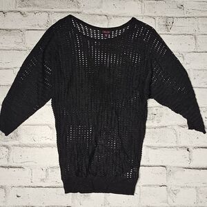 Glo Jeans Black Mesh Knit Long Sleeve Top Layering Sweater Size M