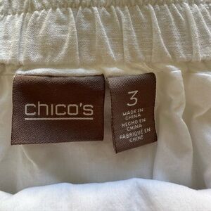 Chico's skirt with an asymmetrical hem, size 3 (XL). Linen blend. Handkerchief bottom, lined half way. Flowy, easy to slip in with any tank or top. Measurements in pics. Perfect for versatile wear.