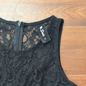 This elegant black lace romper features a sleeveless design and is perfect for any occasion.