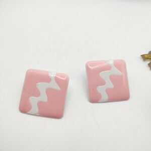 Square pink zigzag 1990s earrings for pierced ears