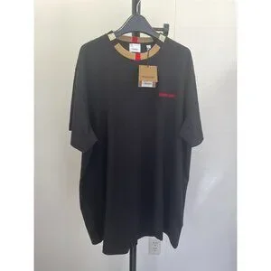 -This was a 100% cotton T-shirt that provided a relaxed fit. The only thing that initially separated it from other black T-shirts like it was the red Burberry lettering embroidered on the chest.But the thing that took this black T-shirt to the next level, in our expert opinion, was the iconic Burberry stripe that was utilized on its collar.