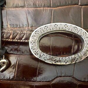 Vintage Brighton Croc-Embossed Leather Silver Metal Clutch Fold-Over & Crossbody