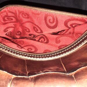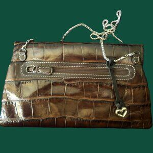 Vintage Brighton Croc-Embossed Leather Clutch Fold-Over & Crossbody