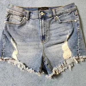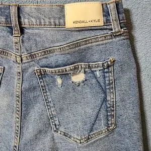 Kendall + Kylie Shorts 7/28 The Icon Short Distressed Cut Off Denim Blue Size 28