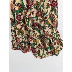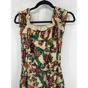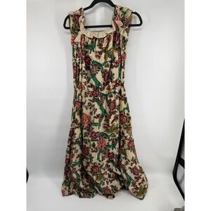 Figue Womens Floral Bird Print Tassel Ruffle Midi Dress Cream Gold Lurex Size M
