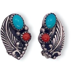 Navajo Sterling Silver with Turquoise and Coral Earrings by RB Designs