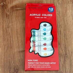 NWT Acrylic Colors Set 12 Tubes of 12ml paint good for walls, tin, wood, ceramic