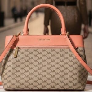 MICHAEL KORS Tan and Pink/Coral Bag