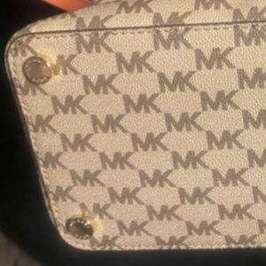 Barely used, it was a gift for me and unfortunately it is not my style. I would LOVE for this bag to find its forever home, it is a gorgeous bag! 💼 🩷 🤎 has three compartments on the inside and a zipper pocket on the outside as well, it also has has a detachable crossbody shoulder strap, all hardware is gold and accompanied by the MK and Michael brand stamps. 😊
