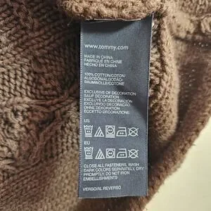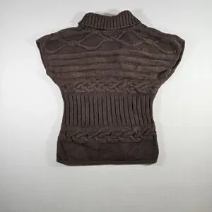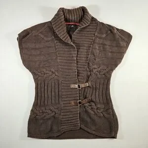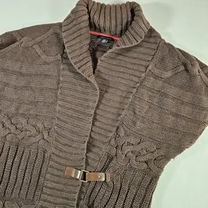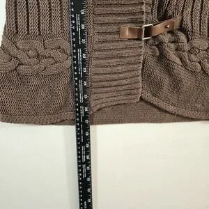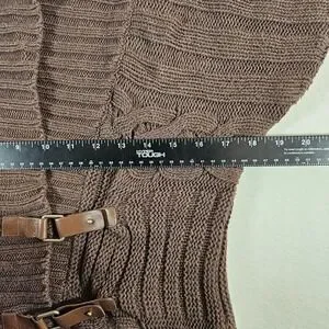 Tommy Hilfiger Sweater Vest Cable Knit Wrap Leather Buckles Women's Large Brown