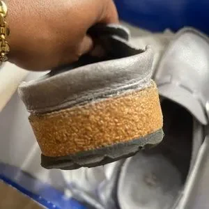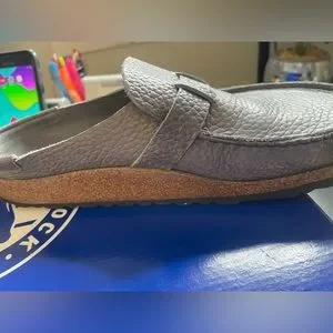 Birkenstock Pebble Gray Leather Clogs