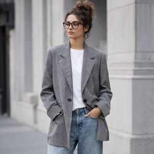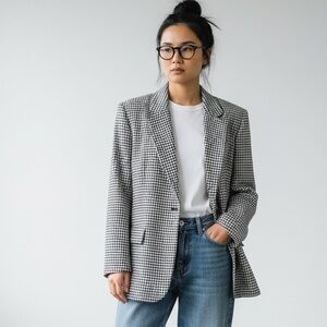 Brand New Over Sized 100% Wool Houndstooth Check Blazer