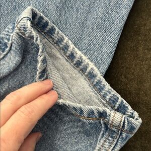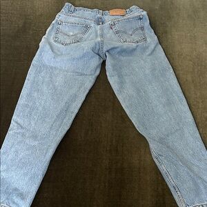 Levi's straight fit jeans in light blue. Timeless and versatile style. They do taper at bottom of like- loose fit. They have been loved.