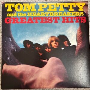 Vinyl record of Tom Petty and the Heartbreakers Greatest Hits. Iconic album cover with bold text.