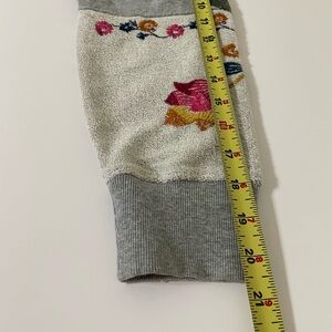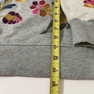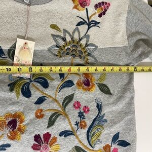 Heathered gray mix knit cotton sweatshirt with embroidered floral, leaf, vine print. New with tags.