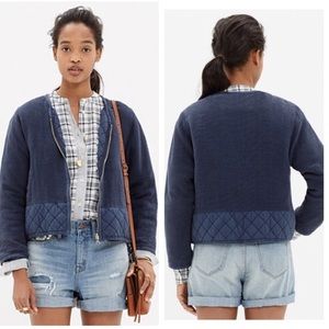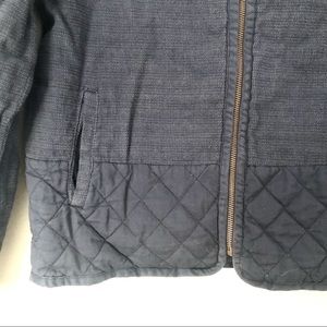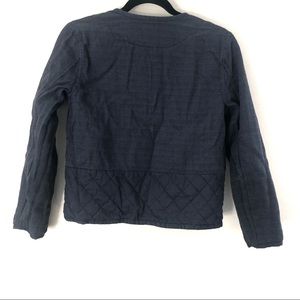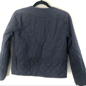 Stylish navy jacket with quilted design. Perfect for layering. Casual and chic.