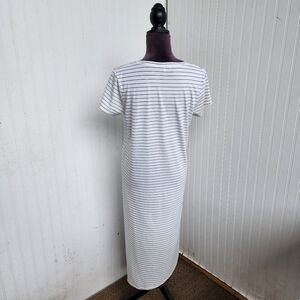Another Love Womens Shirt Hi Low Dress Ctretch Short Sleeve White Black Stripe M