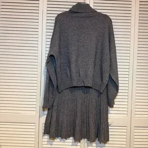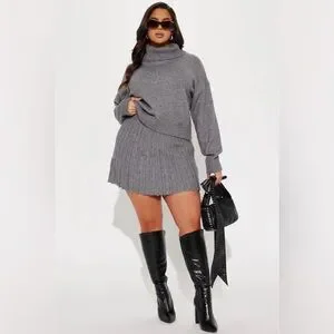 Fashion Nova Pleated Sweater Skirt Set - Grey