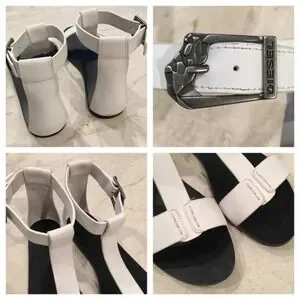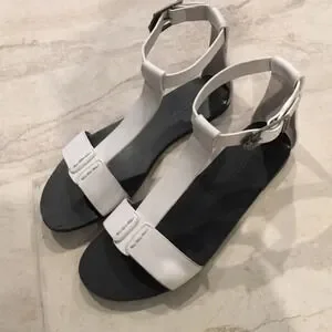 These stylish t strap flats feature an ankle strap with a detailed metal buckle closure. Leather and synthetic lining. Man-made insole. Flexible synthetic outsole. These are from my personal closet. Worn once.