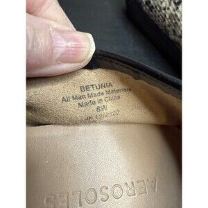 The Aerosoles Betunia loafers in black and gray with animal print pattern are a stylish and versatile slip-on shoe perfect for various occasions such as travel, activewear, formal events, and casual outings. Made of leather with a cushioned foam insole, these loafers offer comfort and durability. The almond toe shape and W shoe width ensure a good fit for women who wear size 8. Suitable for all seasons, these aerosoles loafers in the Betunia model are a chic addition to any wardrobe for those looking for a preppy and trendy shoe option. SMOKE FREE HOME