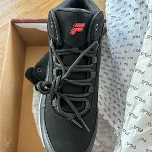 Fila Activisor Viz shoes for kids. Bold black and red design. Perfect for active wear.