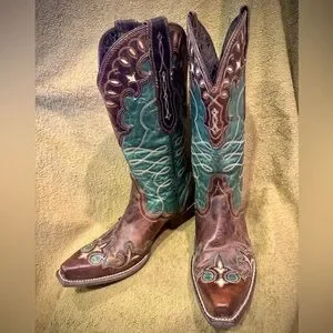 NEW Elegant brown and teal leather boots. Never worn but no box.