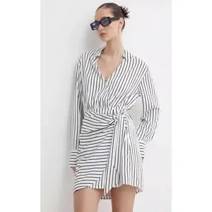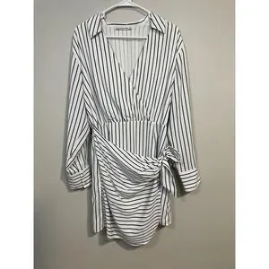 Abercrombie & Fitch Drapey Shirt Dress In White and Black Stripe Size Large