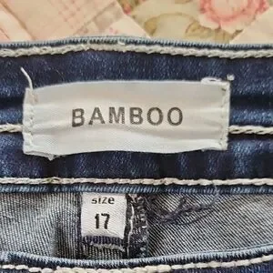 BAMBOO Women's Dark Blue Boot Cut/Flare DistressedJeans