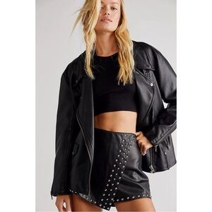 NWT Free People Emmy Mini Studded Skort in Black Faux Leather Grommet Punk Rock